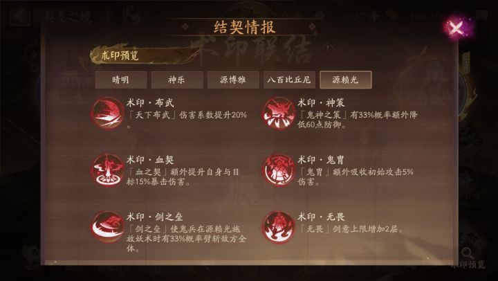 大人可选择指定的阴阳师/英杰,在结契时获得其术印的概率增至25%。