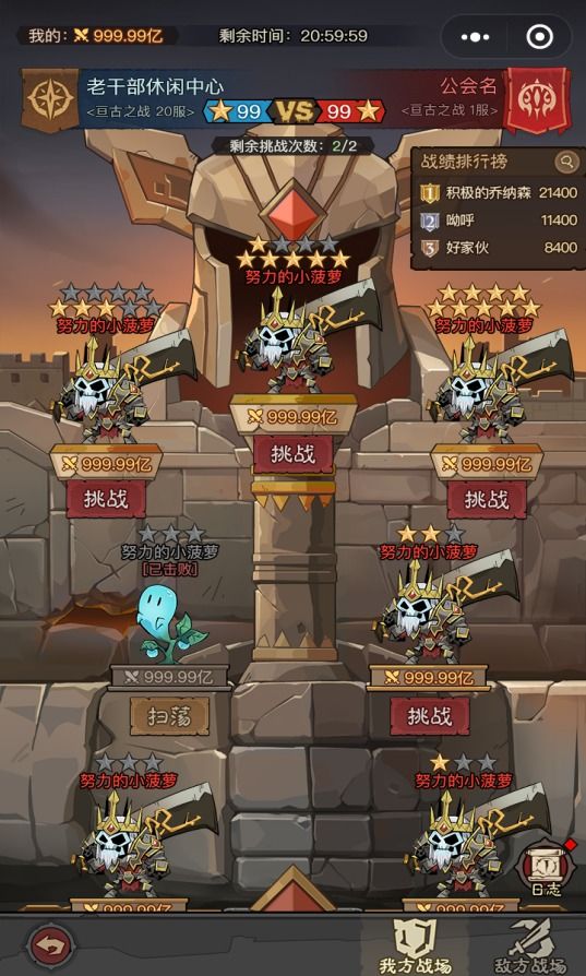 (1)公会组队对决,双方互相击败对手设置的防守成员,根据战绩判断胜负;