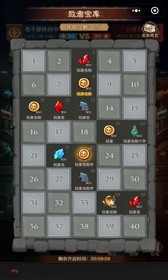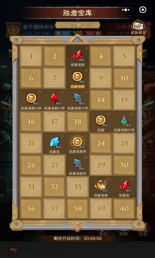 (2)根据胜负获得不同结算奖励,每个成员可以在宝库中抽取一次奖励;