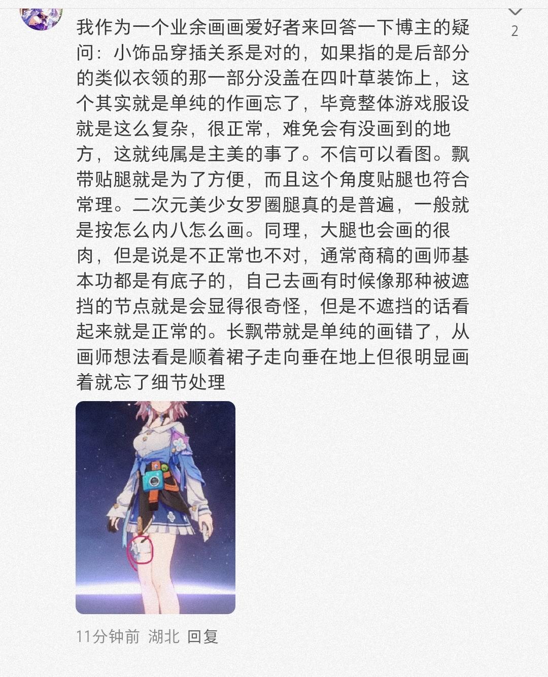 星铁的服装设计挺夸张的,细节很多,画师都容易画错,一些小画师甚至不接米哈游玩家的关于米哈游ip的单子的原因也是这样——细节太难画,干脆就拒了。