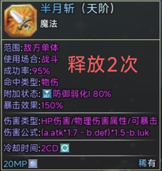 注:天阶半月斩为两段伤害