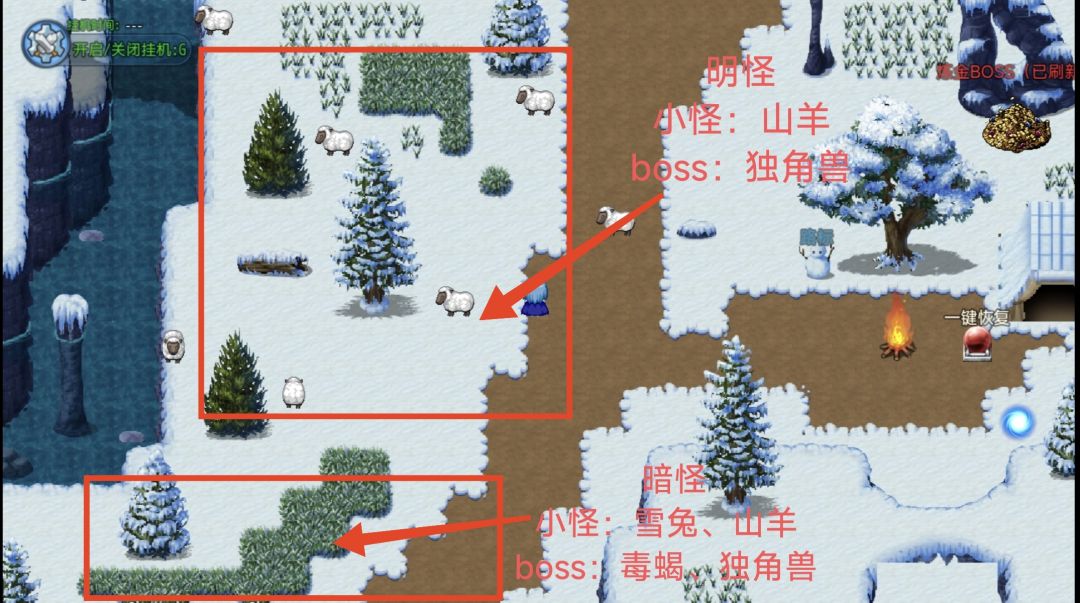 图一稀有boss(30分钟一次):雪狼、树妖王固定掉落1-3钻石
