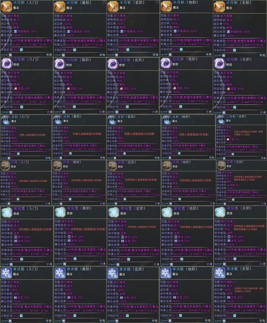 职业技能(三职业技能伤害倍率有所增强,战士技能是增强前的数据…)