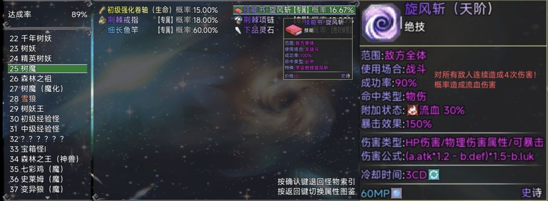 树魔boss掉落战士绝技旋风斩(天阶:4次群体伤害)