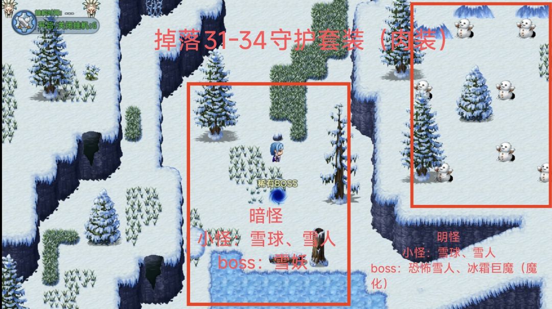(3)狐狸群往右走,可看见雪怪群,掉落肉装守护套装,31-34级可穿戴