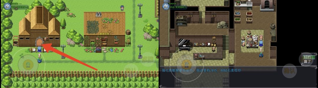 (2)主角职业技能升阶,狼boss掉落战士的半月斩技能,职业技能可消耗技能点升级,任意商店出售技能书可获得技能点,一本技能书=1技能点,云殇镇左下角房间也可兑换技能点(40钻石兑换20技能点)