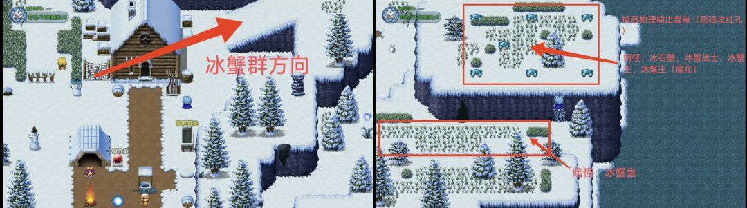 (1)从图二营地往右走:冰蟹群,掉落物理输出套装-秘银套,21-24级可穿戴