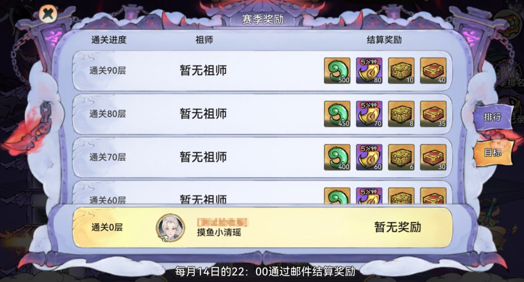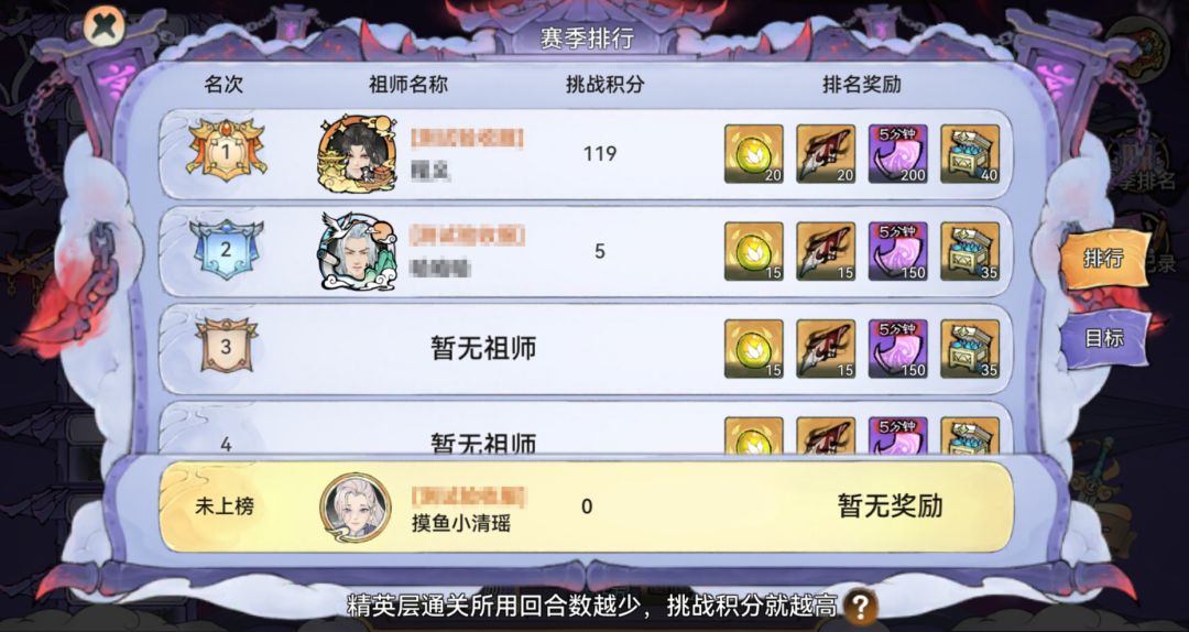 赛季结束时会根据挑战积分进行排名,排名前500的祖师可获取仙灵珀、煞狱骨等排名奖励。