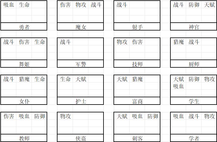 可以看出女仆/厨师、刺客/学生位置可以灵活互换。