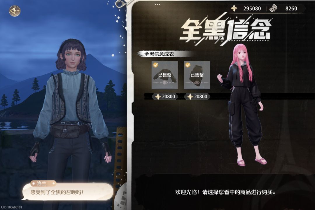 卖黑色卫衣套装,一款只出现在夜晚的酷飒姐姐(注意时间),位于镇长宅邸前锚点前面的桥上,别和心愿花街的桥搞错了。