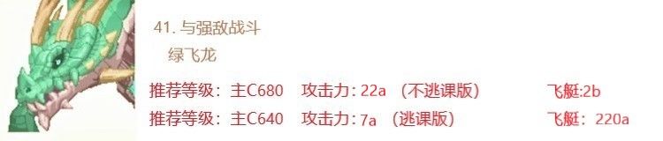 41.绿飞龙 Boss攻击为八段,可逃课可秒杀,注意阵容搭配即可