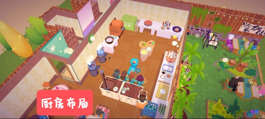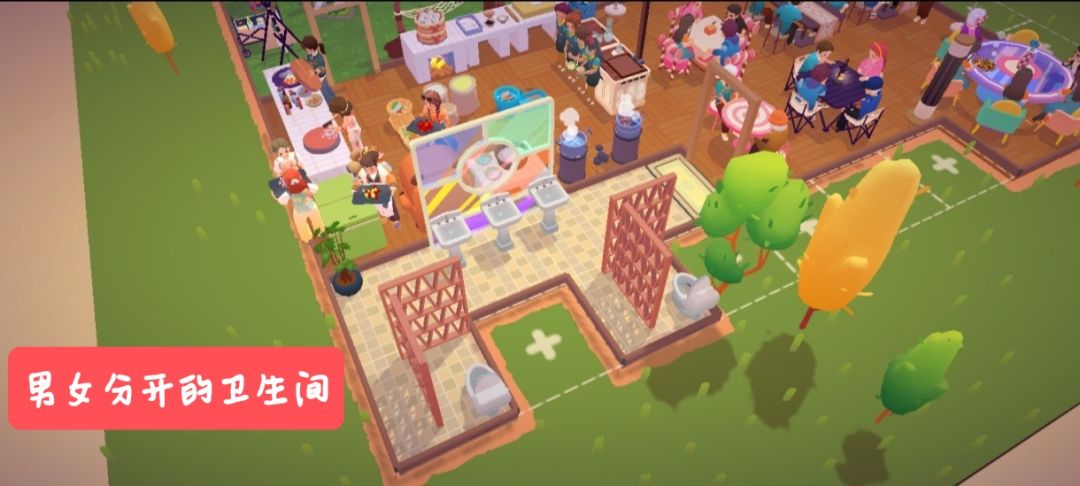 隐藏大门,利用游戏里的小门,制造酒店大门的既视感,后移墙壁,营造出更广阔的室外空间。