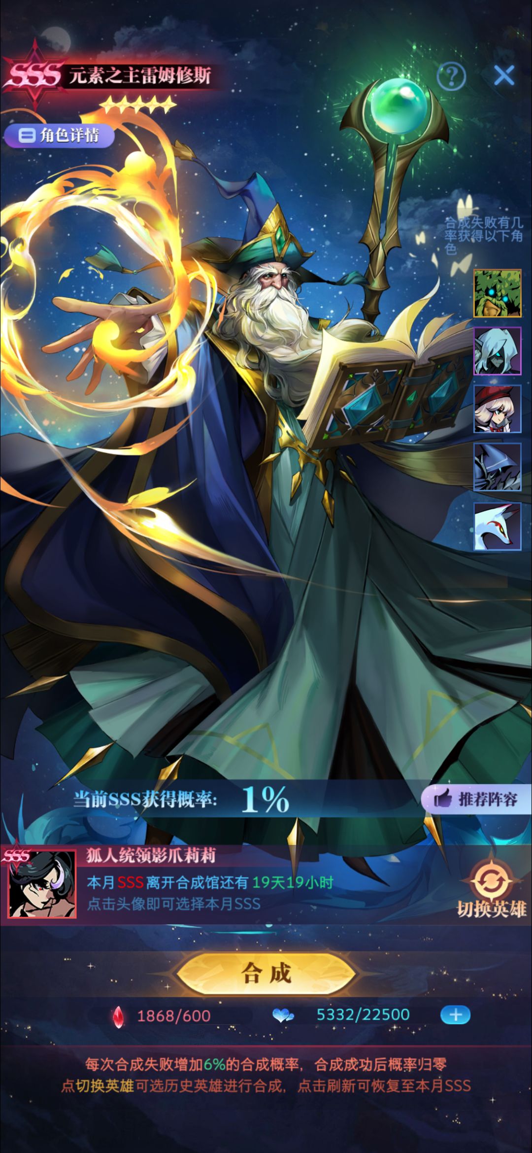 2只SSS推到14/100左右 然后出色域熬三天出神器后正式开推,等级相对应也熬到100来级。(商店命运套比蒙套各种买买买熔炼也造了一小部分)