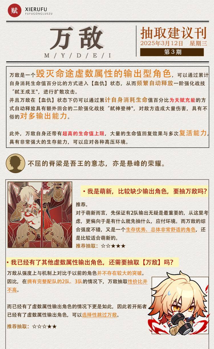 hello大家好鸭~这次带来的是关于【万敌】的抽取建议&培养指南,喜欢的话可以点赞评论哦~