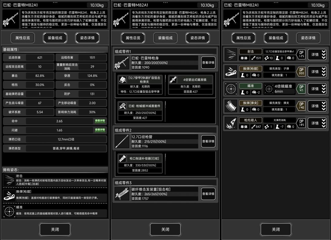 熟练度:步枪类/巴雷特M82A1/射击7级