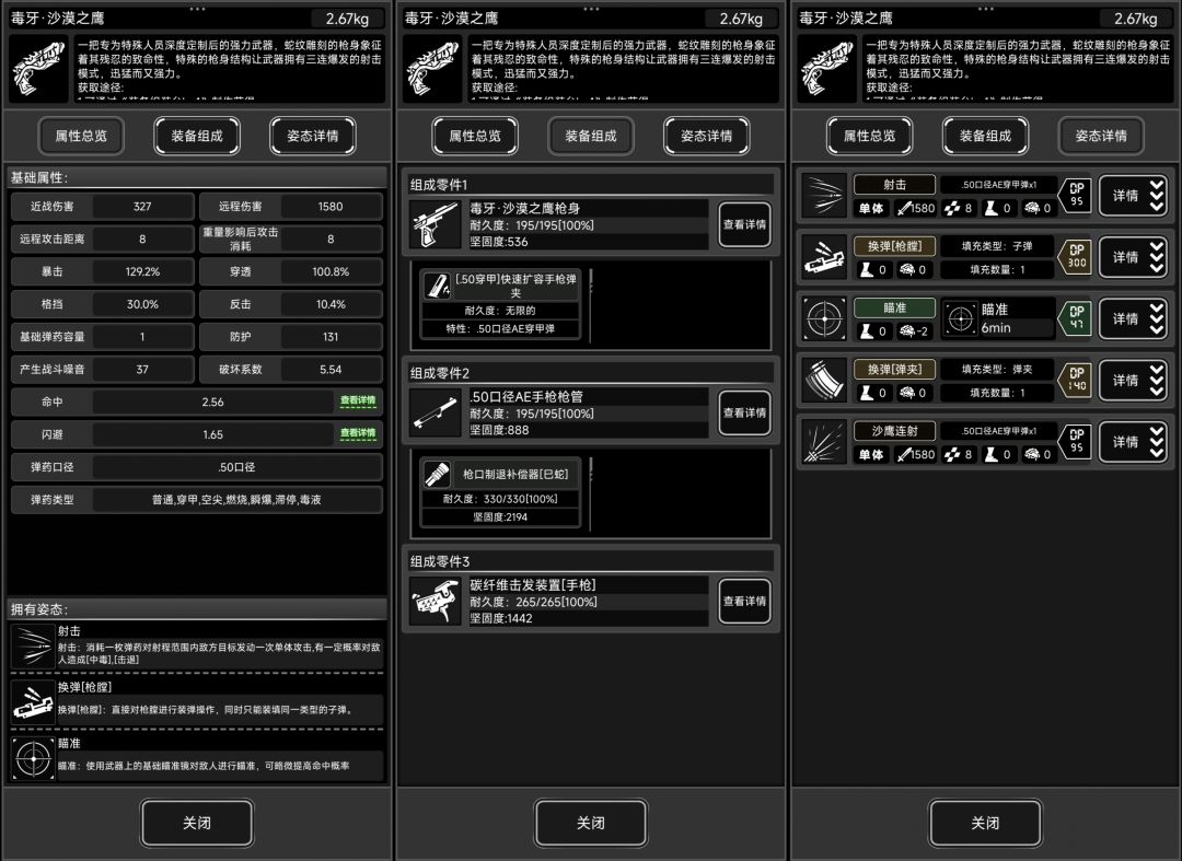 熟练度:手枪类/沙鹰手枪/射击7级