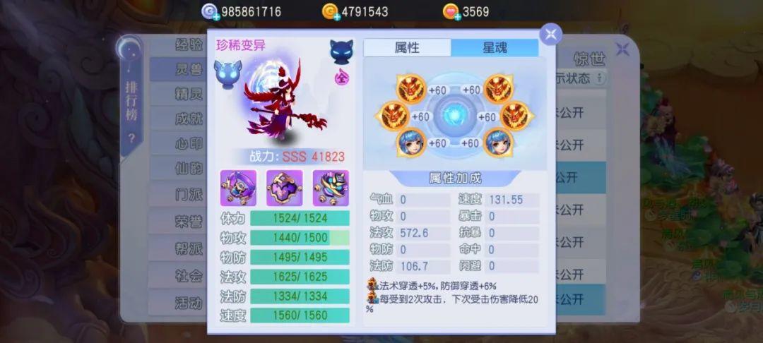 宠物星魂在属性上非常干脆,只有法攻和速度,非常得棒。