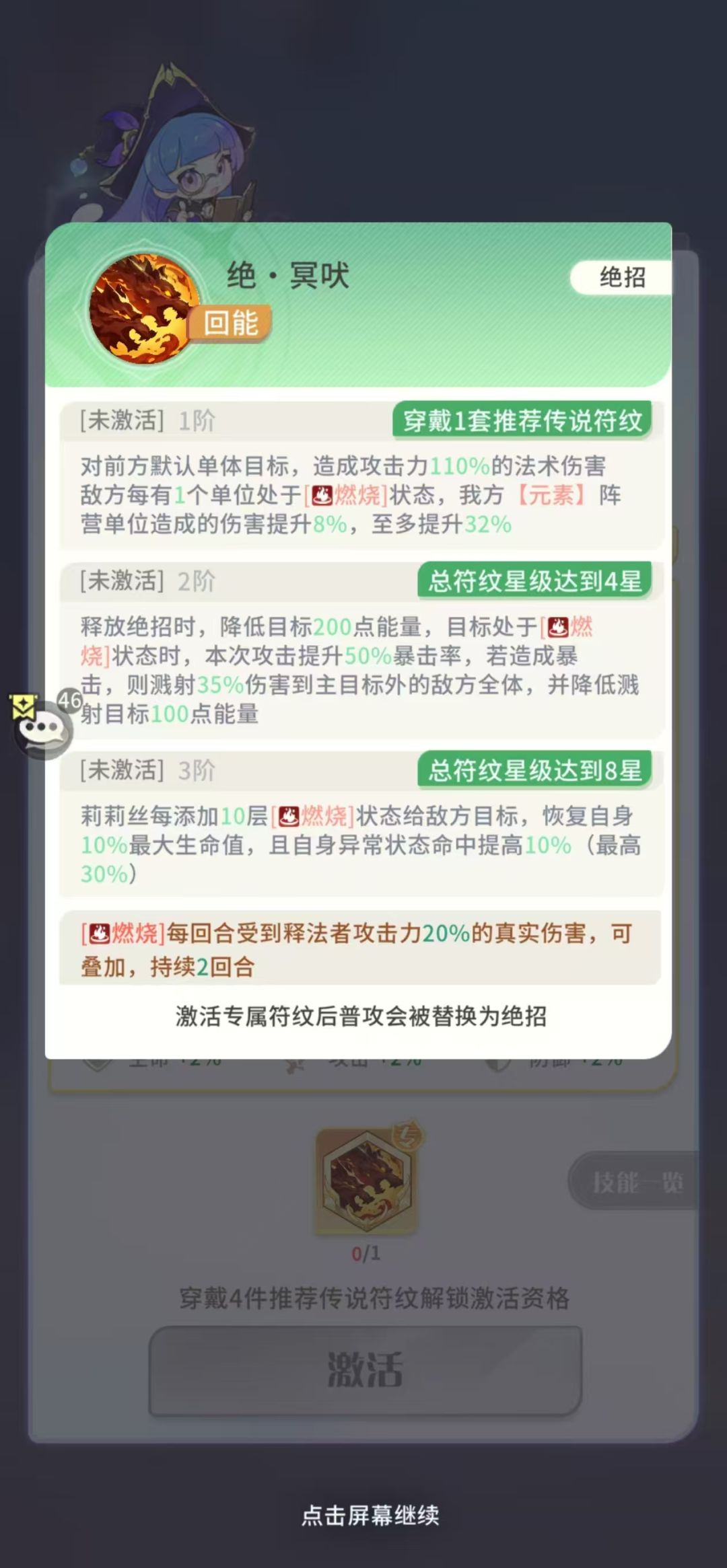 莉莉丝专属可以说是最拉的了,首先1阶加成元素角色伤害是不包括燃烧的真伤的,问过专属客服了我就不发截图了免得被封帖,2阶的暴击和减能,首先普攻就算暴击了,伤害也没多少,然后得能打出普攻才有减能,莉莉丝可没有焰舞的45%异常抗性很容易被控,最后3阶的10层燃烧回血加异常命中得莉莉丝活下来还不被控制才能打出10层燃烧,终究还是机制不匹配导致角色拉胯,就应该像焰舞那样自身够硬站着不动都能靠队友debuff挂火才好用。我有个号红5莉莉丝六星半神都在考虑下主队了,不推荐练。