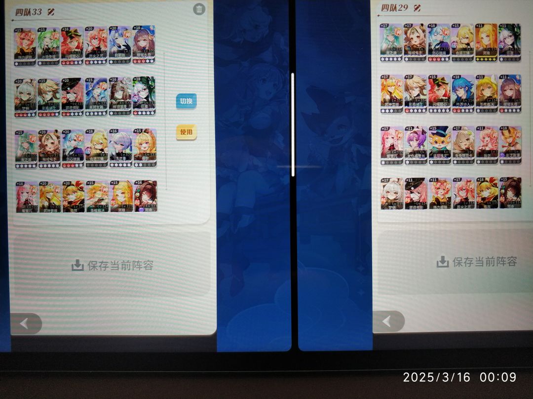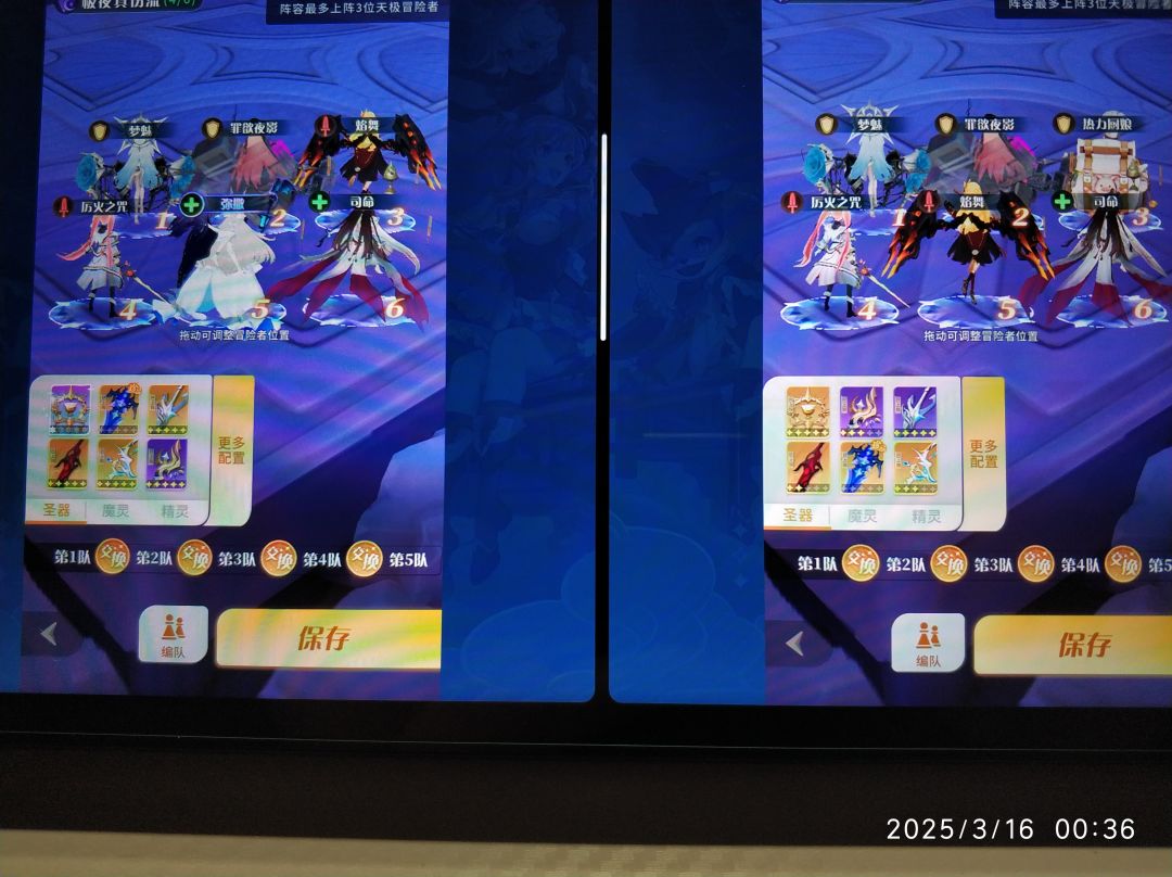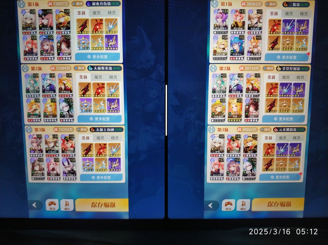 注意要在强队中间穿插弱队来消耗,还要田忌赛马,用1队打对面2队,用3,4队消耗对面1队。还有我左边大号4队用的冰圣火省出了其他强势角色去其他队伍打消耗,但是小号都没有满星蕾娜圣棺,所以不能这么玩,不然一个强队都没有了。