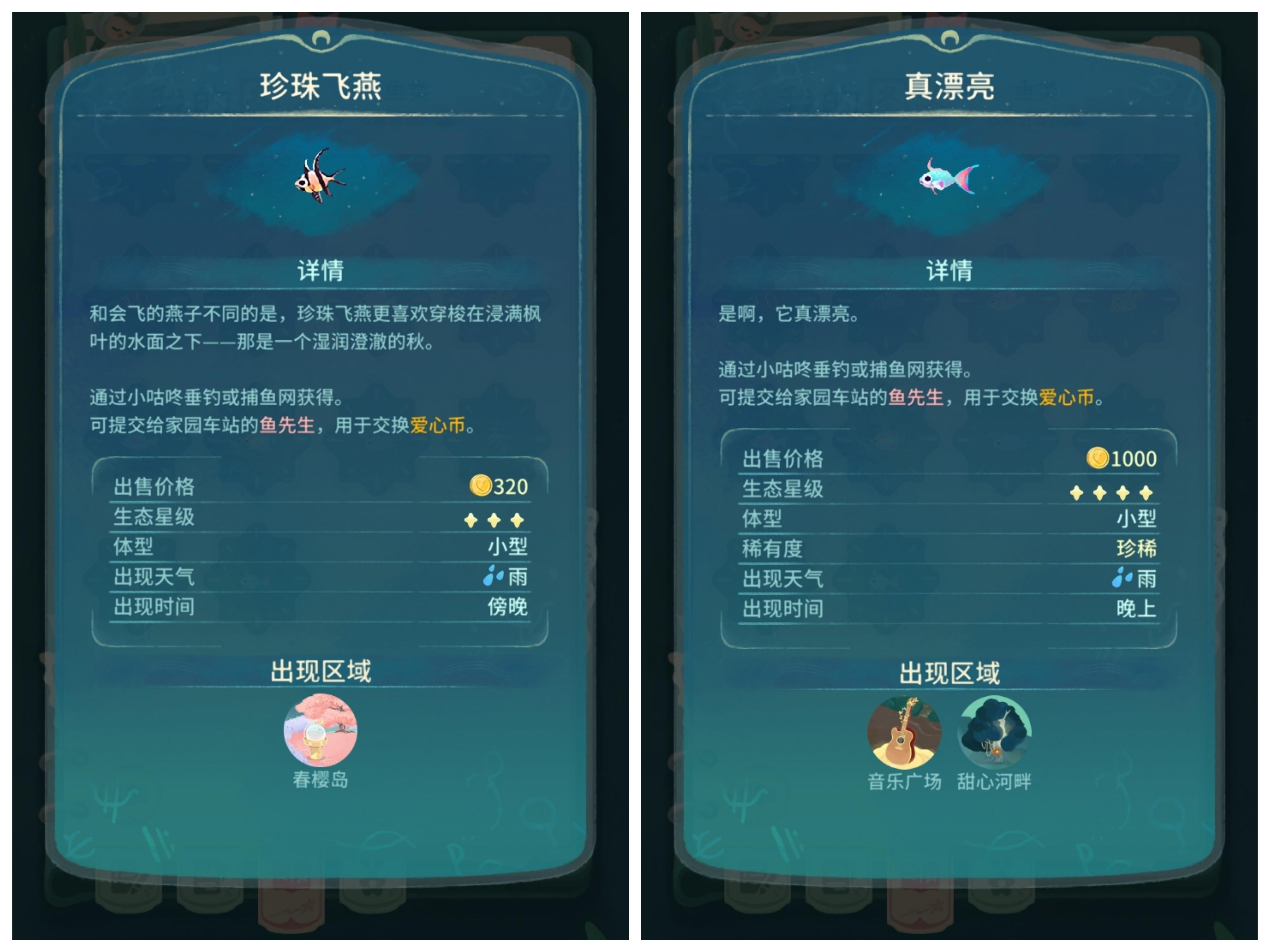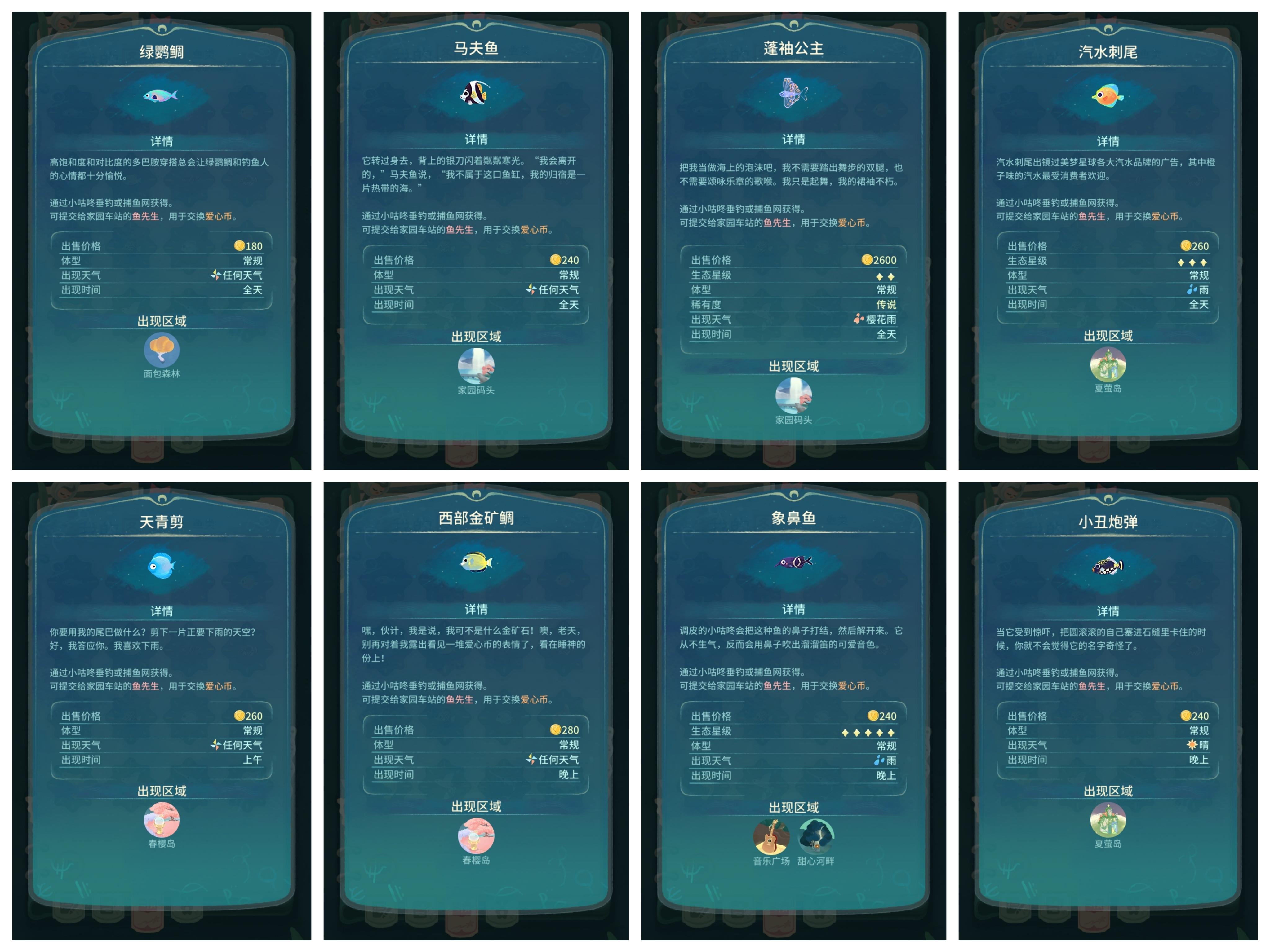 在3.5大版本更新中,官方共计调整了22条鱼类捕获条件,并且为玩家画了新鲜大饼:春樱岛和夏萤岛。(按规律来看,猜测后续还有秋枫岛和冬雪岛)
