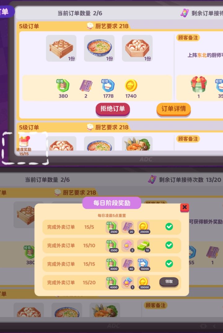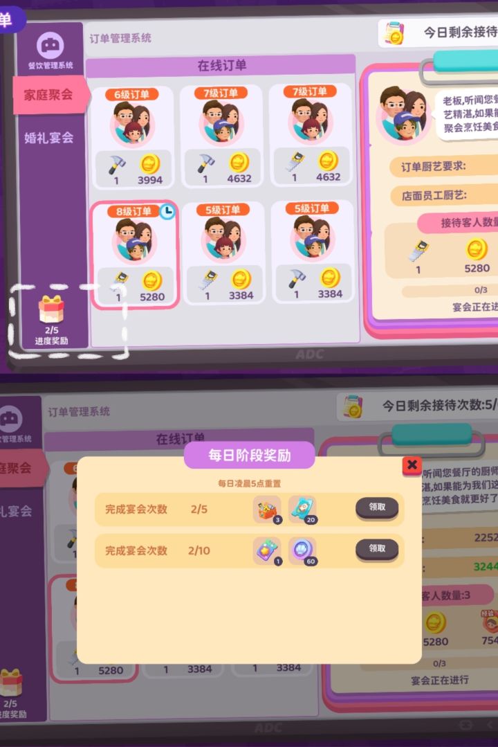 外卖订单/宴会订单/小镇客人/农场订单