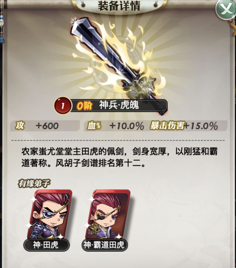 霸道田虎来袭,专属技能“霸绝寰宇”:若对方后排弟子相邻的前排单位阵亡或不存在,额外攻击该弟子;并附加目标当前生命值10%*霸道层数的额外伤害;霸道田虎为作为我方1速时,此技能可无视控制释放;非1速时,造成真实伤害。