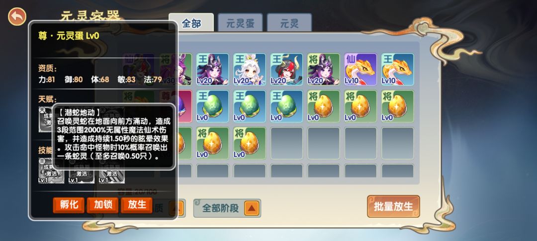 蛇融合过一次,可惜技能太废了,还学个回血回来