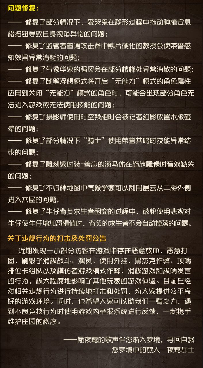 #第五人格维护公告