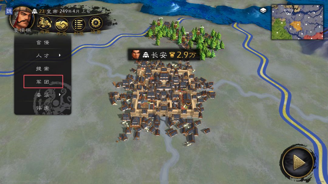 *军团会依照设定的方针行事。军团AI将会辅助管理军团旗下的城池、武将、建筑、经济、出征等。