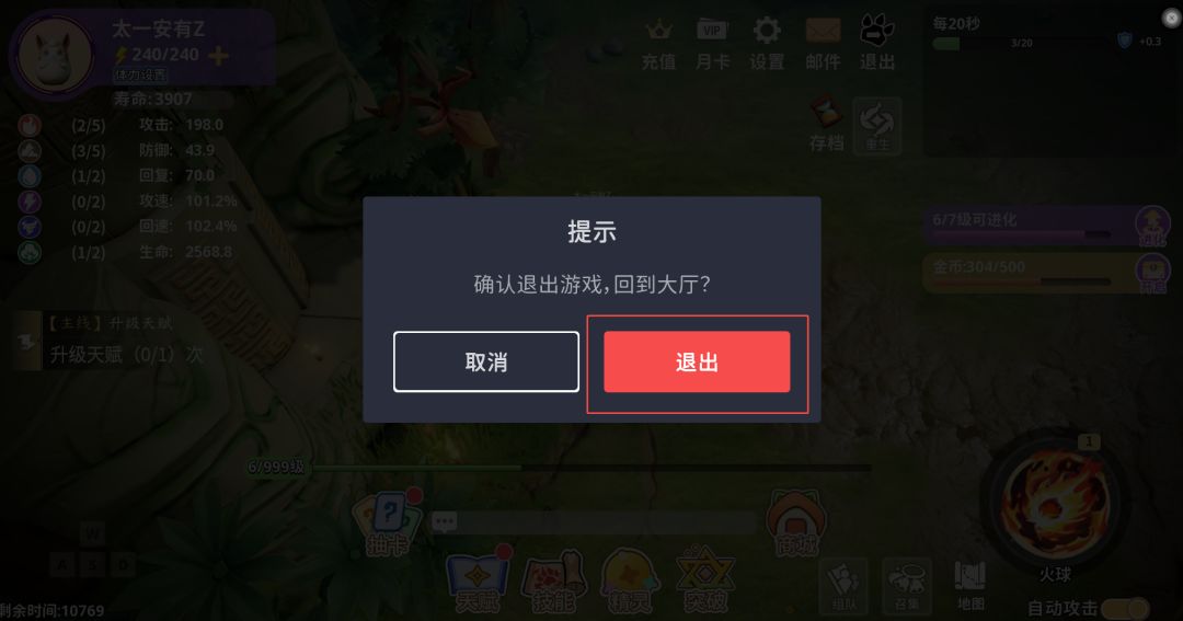 我们在服务端新增了「自行退出游戏时」事件,此事件会玩家通过点击下图「退出按钮」时被触发