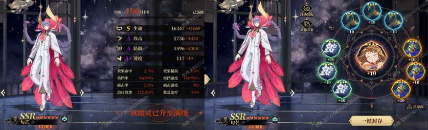 句芒的治疗效果与生命加成与治疗效果相关,句芒技能持续期间,也要尽量保证站场时间,所以养成属性为生命加成、治疗效果、格挡率、格挡强度;和位置携带「守心」提供高额护盾与减伤效果。
