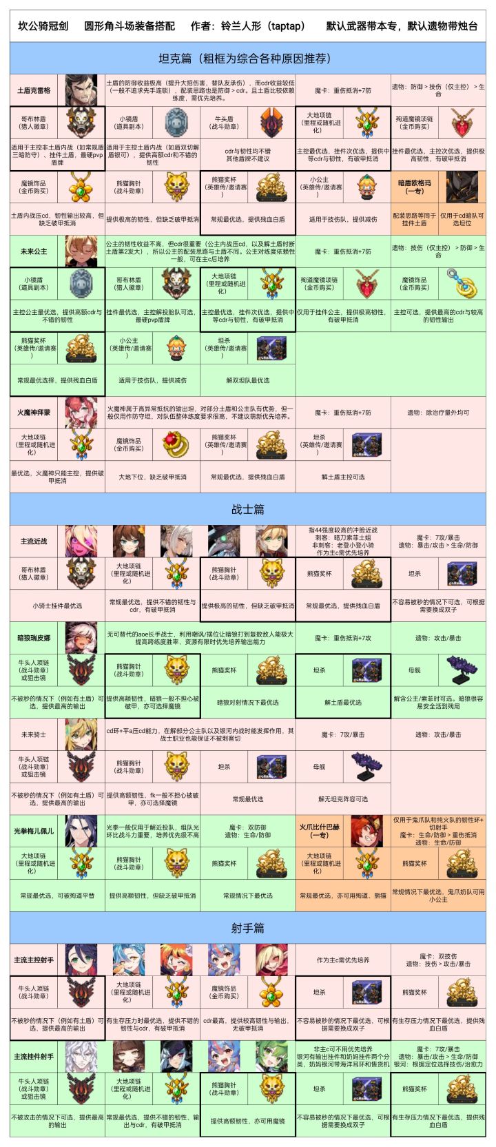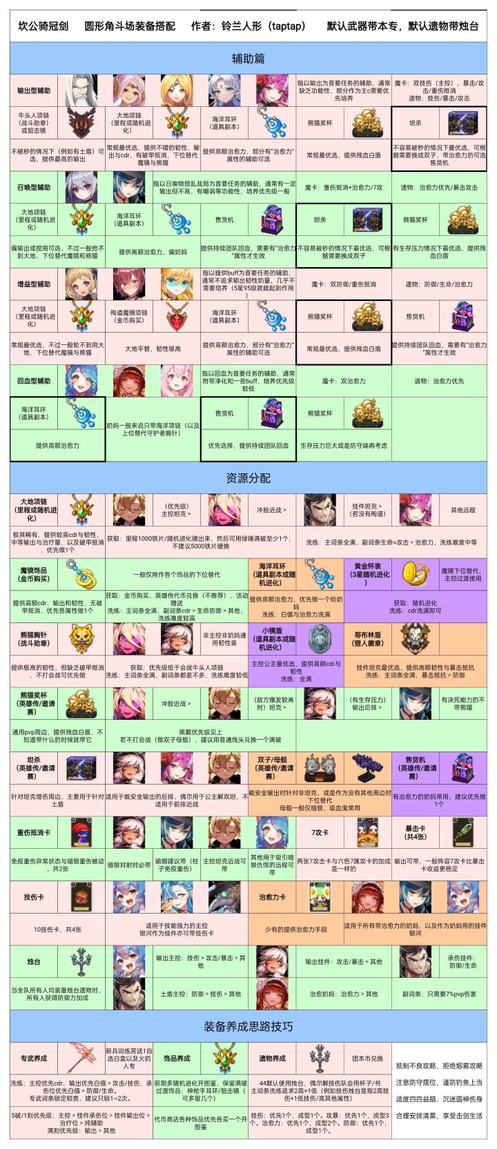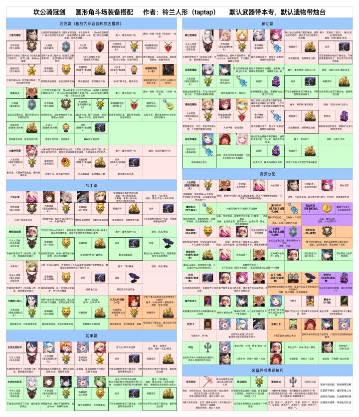 个人做的圆形角斗场配装一图,大部分内容同样适用于pve模式(推图、迷宫、电梯、tts英雄传低层)