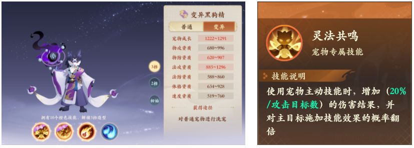 因为小鹿的单体技能太猛了,而这个狗子只能打单法,伤害是比不过小鹿的,如果有小鹿的可以不考虑这个黑狗。这只宝宝不适合打群法,被动伤害加得很低,最适合的就是打单法,比较推荐用毒咒,有被动的加成就是20%概率给对面上毒,可以破对面保命魔免,也能毒一口几百的血。