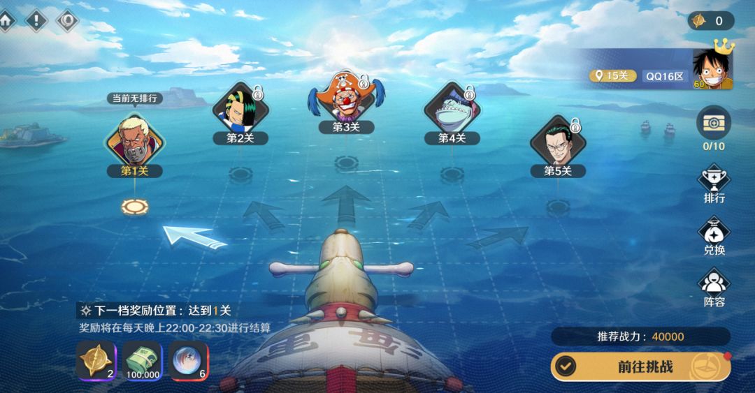 活动内容:活动共6关,活动关卡逐日开放;每关均会解锁不同的强化能力,每个强化能力会有2个方向供船长选择,选择强力的战斗效果在战场上消灭敌人吧;船长通关后,即可领取对应关卡的奖励。