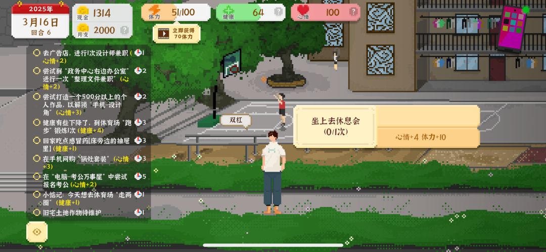 点开地图,我们还可以去学校去放松心情缓解疲劳,增加心情。![[表情_酷]](https://img.tapimg.com/market/images/edd50e702f508971043f5619f686740e.png)