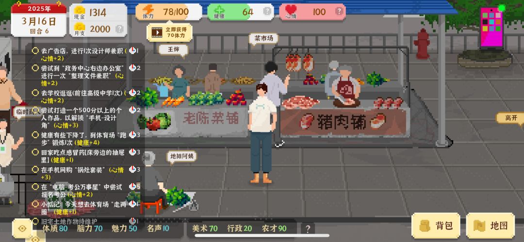 还可以去菜市场有很多游戏里面可以认识的角色,他们各自会卖菜还有什么东西的。![[表情_吃瓜]](https://img.tapimg.com/market/images/d07b262774c8a022a7dddbc39683da6b.png)
