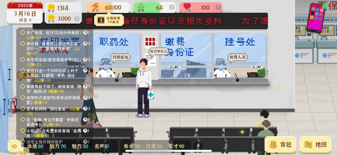 我们还可以去医院去买药呀什么的在家里准备点药,健康值不够的话是会影响很多劳动的什么的。![[表情_泪目]](https://img-tc.tapimg.com/market/images/210616a5579a37160baaf2d9d0028664.png)