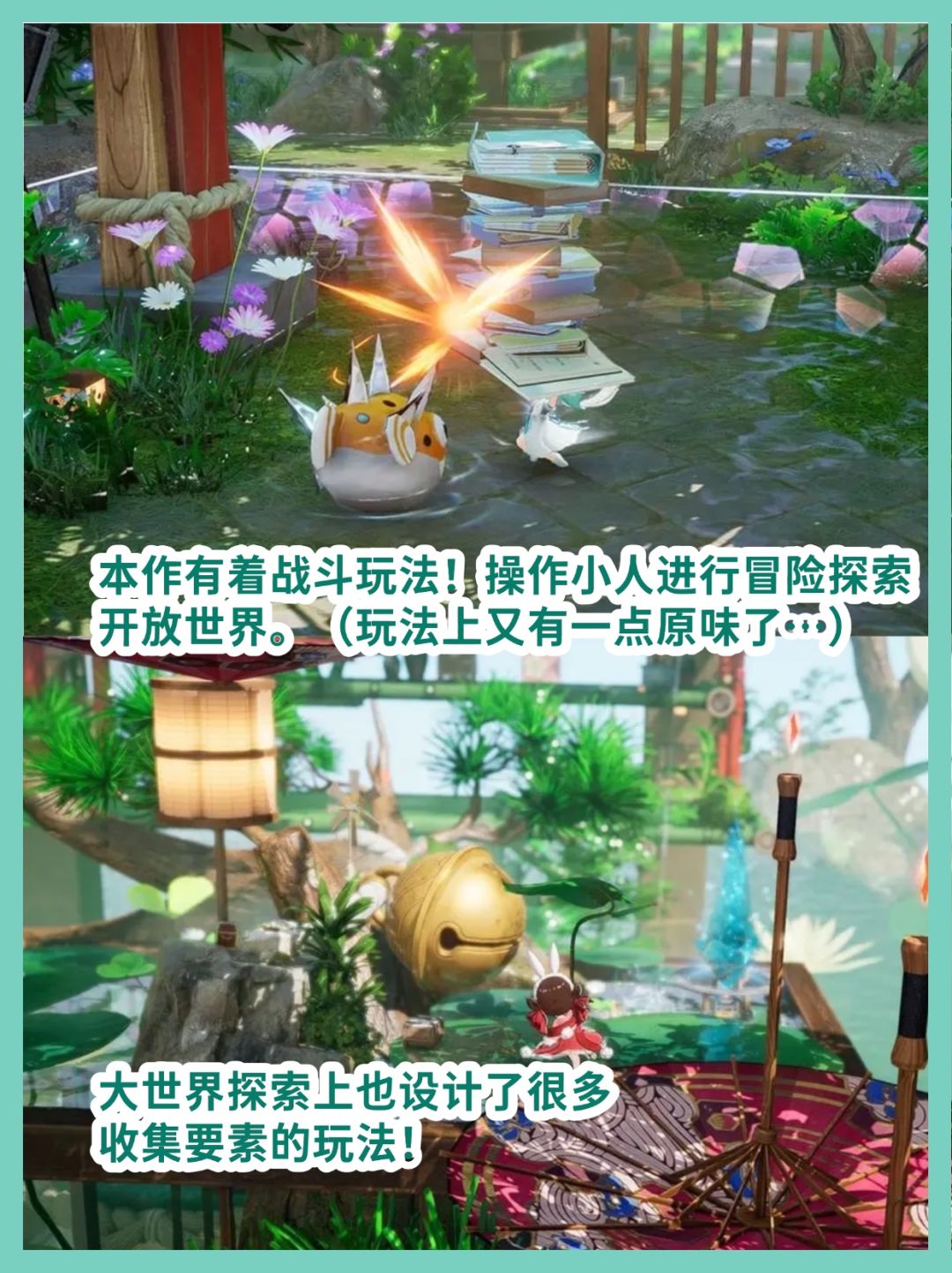 ✅玩法上箱庭探索与3D跳跃算是本作的核心之一了~玩家需要探索各种有意思的微缩景观,并且借助跳跃,漂浮等完成探索,地图上有不少资源点!尤其是撑伞真的很可爱,不过目前的一个槽点是背包容量限制,以及在跑图过程中因为优化问题还是存在卡顿+穿模的问题。