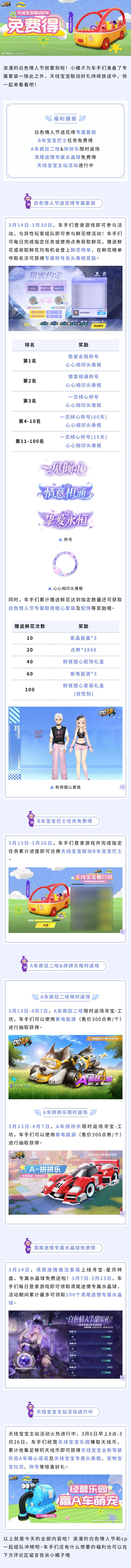 浪漫的白色情人节即将到来,车手们记得叫上CP一起送花冲击榜单吧~