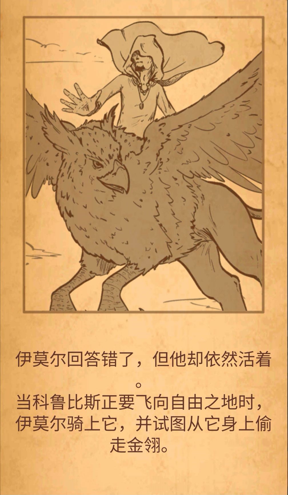 鸟笼第二部通关了。这一部相比第一部难度提升了,游戏关卡增加,还加入了魔法的运用。不过,总体难度不大,细心点、多花点时间都能通关。这一部共六章30关,外加一个终章,分别要解救猫头鹰、乌鸦、凤凰、冰龙、龙、狮身鹰首兽。光听这些动物名称就能猜到这一部的故事架构更大了,的确,这次是以魔法师的视角展开的,贪婪、仇恨操控着人心。