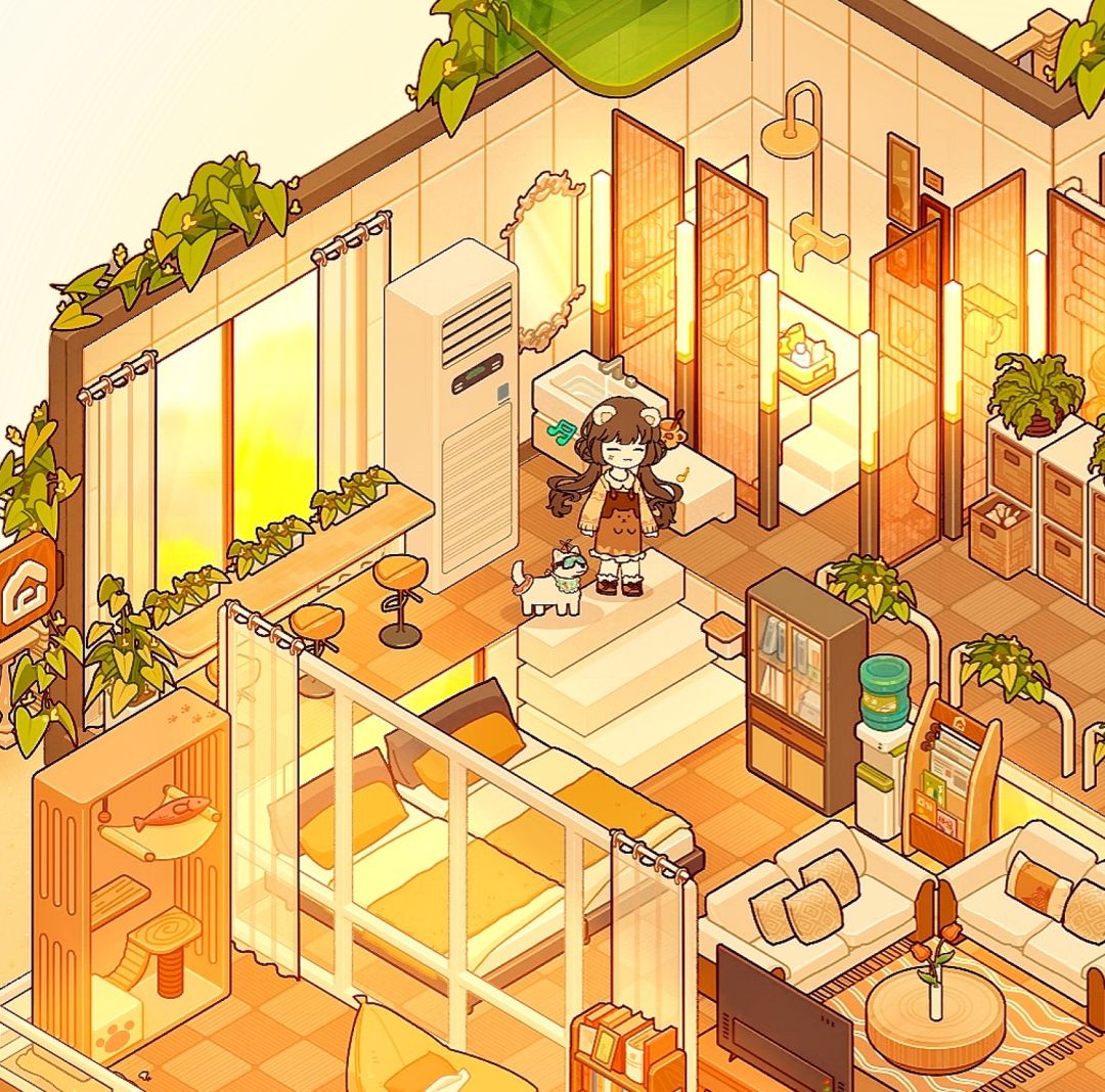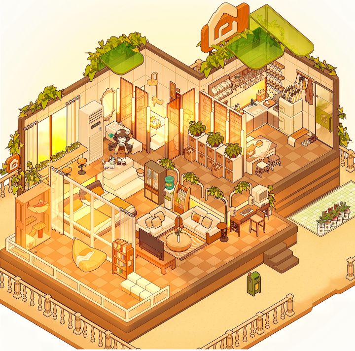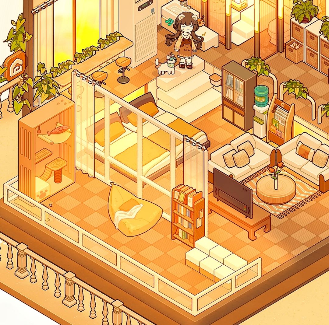 P7:阳台区(阳台区放超大猫爬架给猫猫一个温暖的家,再放上自己的图书架和懒人沙发,周末休息时可以在懒人沙发上晒晒日光浴☀️)