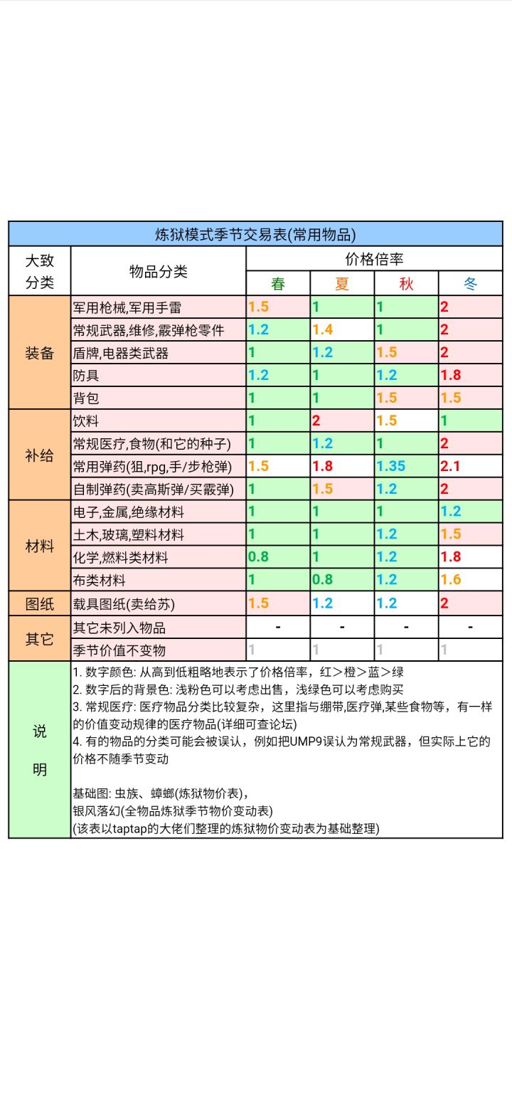 炼狱模式季节交易表(常用物品)