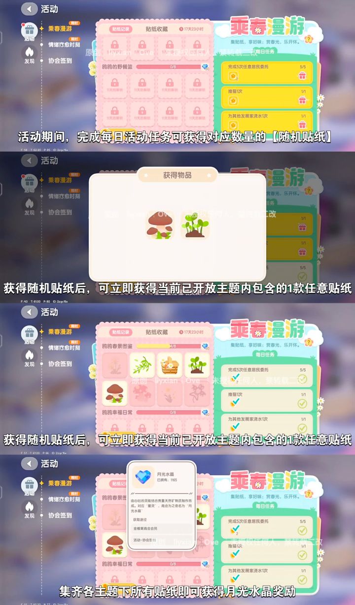集齐各主题下所有贴纸即可获得月光水晶奖励。