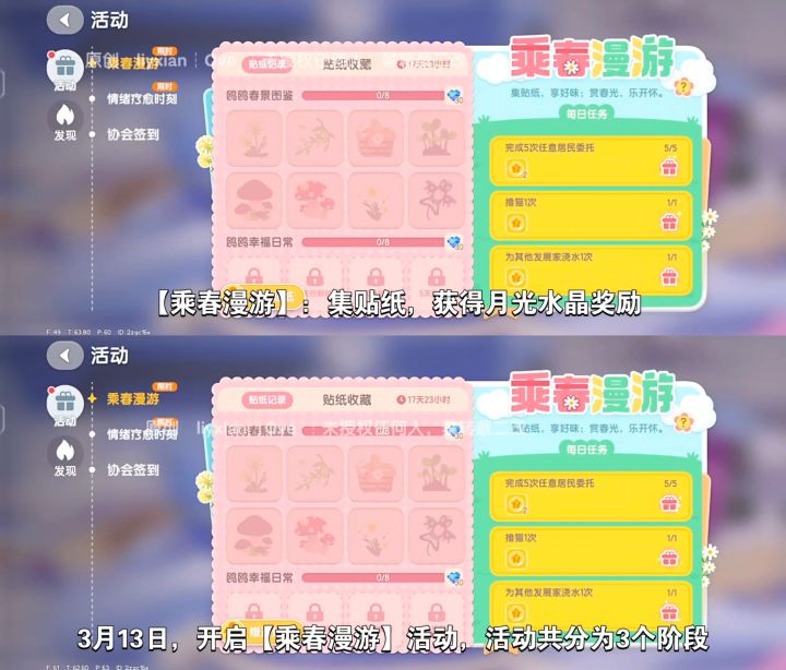 3月13日,开启【乘春漫游】活动,活动共分为3个阶段。