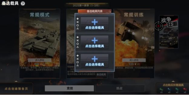备选载具设置入口:进入游戏-天梯模式右下角“备选载具”入口,组队页面右下角“备选载具”入口。