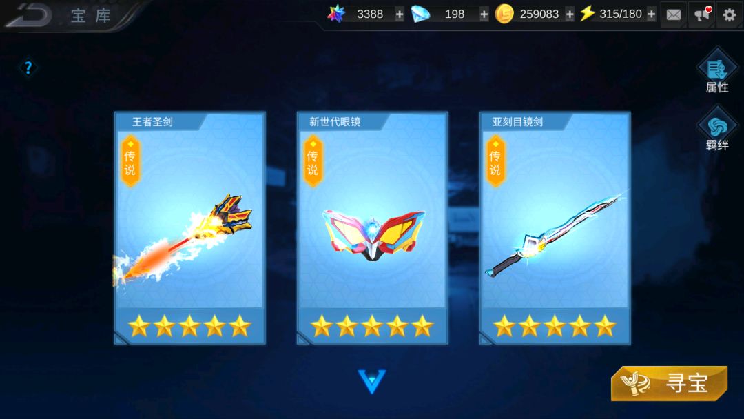 新增王者圣剑、新世代眼镜、亚刻护目镜三件神器