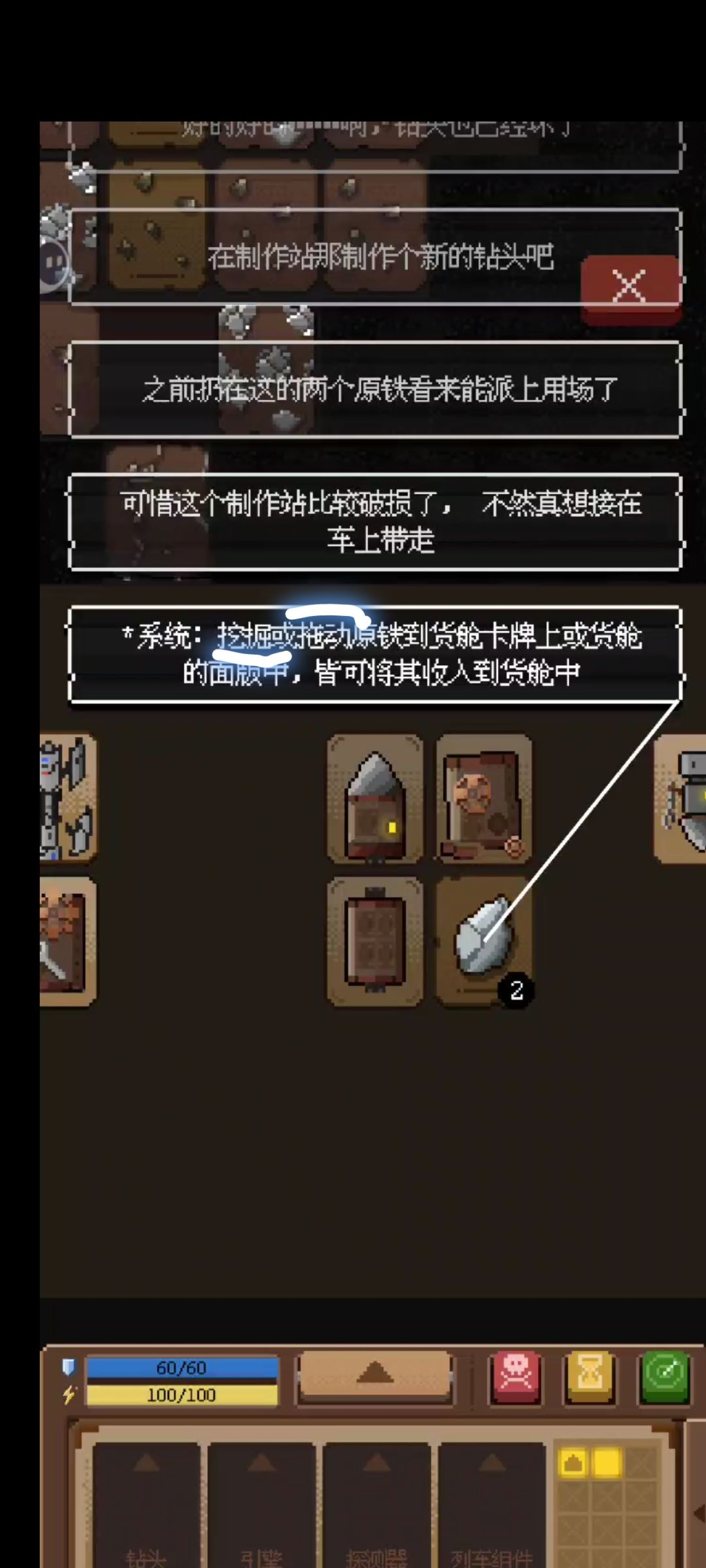 移动只能在车头前点击,其他地方都不行,有一次用火药炸了矿石,开着车去收获胜利果实,结果不能通过挖掘收到车厢,只能手动滑动到车厢里,说实话有点累,希望游戏能优化一下吧