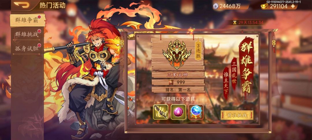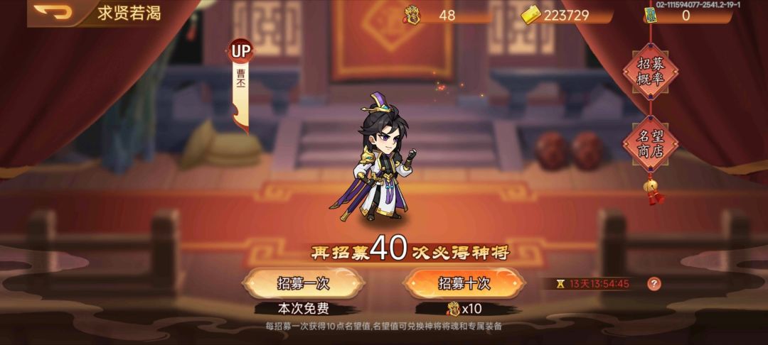 活动内容:活动期间,可通过消耗招募令进行招募武将,up武将的概率会高于其他同档位武将(每期活动会更换up武将),每次招募可获得10名望,名望可在名望商店兑换道具;