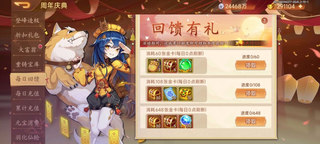 活动内容:活动期间,累计消费元宝达到目标值即可领取奖励!