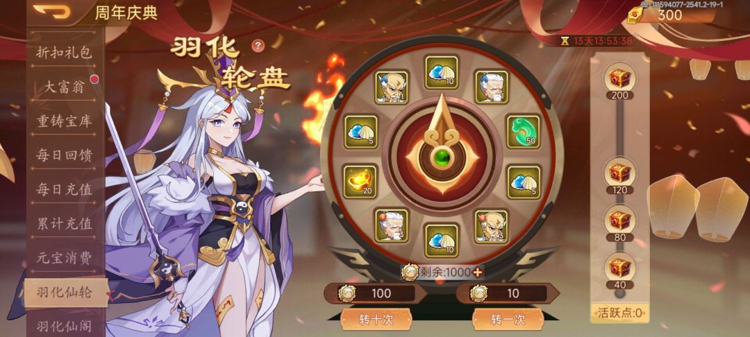 活动内容:活动期间使用“六壬式盘”可以转动羽化仙轮,仙轮概率掉落蓝珍珠、于吉仙魂、于吉资石、水镜仙魂、水镜资石等道具。蓝珍珠可于羽化仙阁兑换奖励。